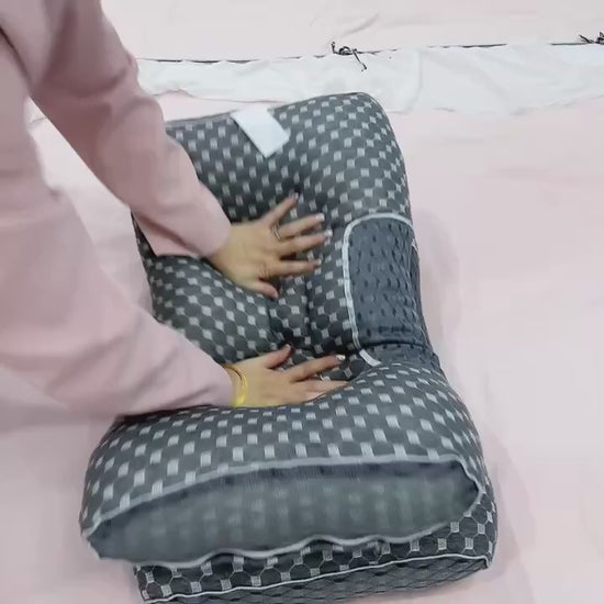 The 3D Knitted Cotton Massage Pillow is crafted for maximum comfort and neck support, combining soft, breathable materials with an ergonomic shape. Its unique 3D woven structure enhances airflow, preventing heat buildup and keeping you cool through the night.
